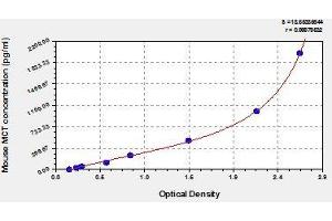 - This assay employs the quantitative sandwich enzyme immunoassay technique. Antibody specific for MCT has been pre-coated onto a microplate. Standards and samples are pipetted into the wells and any MCT present is bound by the immobilized antibody. After removing any unbound substances, a biotin-conjugated antibody specific for MCT is added to the wells. After washing, avidin conjugated Horseradish Peroxidase (HRP) is added to the wells. Following a wash to remove any unbound avidin-enzyme reagent, a substrate solution is added to the wells and color develops in proportion to the amount of MCT bound in the initial step. The color development is stopped and the intensity of the color is measured.