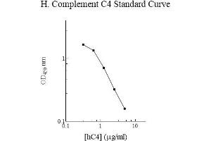 - This assay employs a quantitative competitive enzyme immunoassay technique that measures human complement C4 in less than 3 hours. A polyclonal antibody specific for human complement C4 has been pre-coated onto a 96-well microplate with removable strips. Complement C4 in standards and samples is competed by a biotinylated complement C4 sandwiched by the immobilized antibody and streptavidin-peroxidase conjugate. All unbound material is then washed away and a peroxidase enzyme substrate is added. The color development is stopped and the intensity of the color is measured.