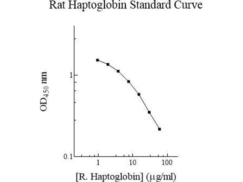 - Rat Haptoglobin Microplate: A 96-well polystyrene microplate (12 strips of 8 wells) coated with a polyclonal antibody against rat haptoglobin. 2 Sealing Tapes: Each kit contains 3 precut, pressure sensitive sealing tapes that can be cut to fit the format of the individual assay. Rat Haptoglobin Standard: Rat haptoglobin in a buffered protein base (480 g, lyophilized). Biotinylated Rat Haptoglobin: 1 vial, lyophilized. EIA Diluent Concentrate (10x): A 10-fold concentrated buffered protein base (30 ml). Wash Buffer Concentrate (20x): A 20-fold concentrated buffered surfactant (30 ml). Streptavidin-Peroxidase Conjugate (SP Conjugate): A 100-fold concentrate (80 l). Chromogen Substrate: A ready-to-use stabilized peroxidase chromogen substrate tetramethylbenzidine (8 ml). Stop Solution: A 0.5 N hydrochloric acid to stop the chromogen substrate reaction (12 ml).