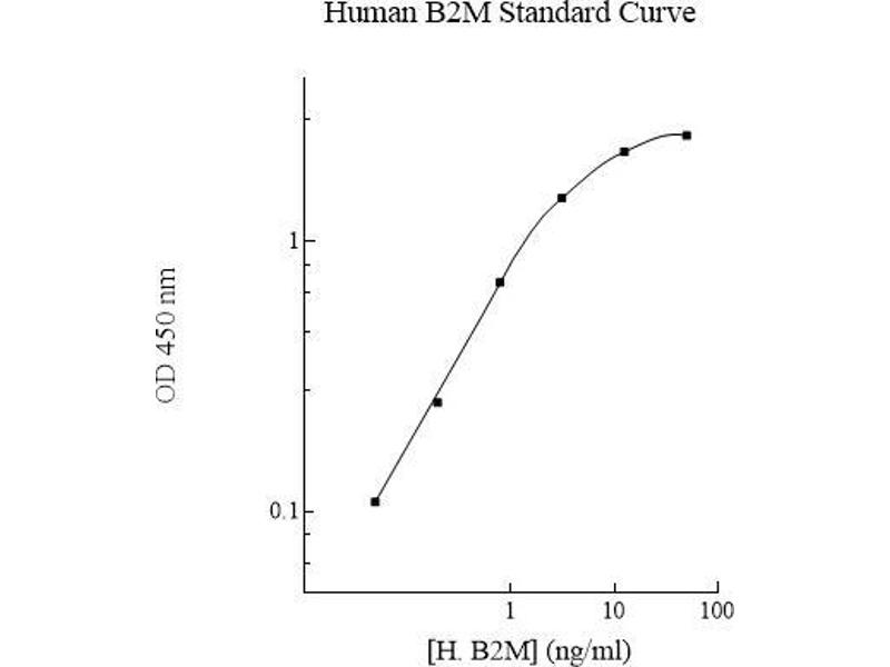 - Human beta-2-Microglobulin Microplate: A 96-well polystyrene microplate (12 strips of 8 wells) coated with a polyclonal antibody against human B2M. Sealing Tapes: Each kit contains 3 precut, pressure sensitive sealing tapes that can be cut to fit the format of the individual assay. Human beta-2-Microglobulin Standard: Human B2M in a buffered protein base (40 ng, lyophilized). Biotinylated Human beta-2-Microglobulin Antibody (50x): A 50-fold concentrated biotinylated polyclonal antibody against B2M (120 l). MIX Diluent Concentrate (10x): A 10-fold concentrated buffered protein base (30 ml). Wash Buffer Concentrate (20x): A 20-fold concentrated buffered surfactant (30 ml, 2 bottles). SP Conjugate (100x): A 100-fold concentrate (80 l). Chromogen Substrate (1x): A stabilized peroxidase chromogen substrate tetramethylbenzidine (8 ml). Stop Solution (1x): A 0.5 N hydrochloric acid solution to stop the chromogen substrate reaction (12 ml).