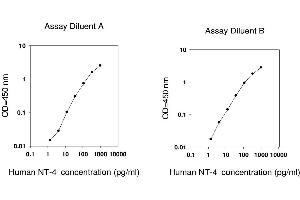 - The Human NT-4 ELISA (Enzyme-Linked Immunosorbent Assay) kit is an in vitro enzyme-linked immunosorbent assay for the quantitative measurement of human NT-4 in serum, plasma, cell culture supernatants and urine. This assay employs an antibody specific for human NT-4 coated on a 96-well plate. Standards and samples are pipetted into the wells and NT-4 present in a sample is bound to the wells by the immobilized antibody. The wells are washed and biotinylated anti-human NT-4 antibody is added. After washing away unbound biotinylated antibody, HRP-conjugated streptavidin is pipetted to the wells. The wells are again washed, a TMB substrate solution is added to the wells and color develops in proportion to the amount of NT-4 bound. The Stop Solution changes the color from blue to yellow, and the intensity of the color is measured at 450 nm. Reproducibility: Intra-Assay: CV<10% Inter-Assay: CV<12%.