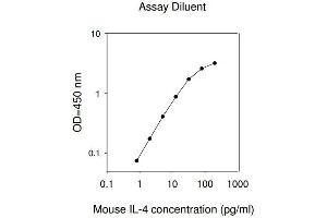 Typical Data: These standard curves are for demonstration only. A standard curve must be run with each assay. Assay Diluent Mouse IL-4 concentration (pg/mL) 0.1 1 10 100 1000 O D =4 50 n m 0.1 1 10