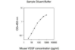 Typical Data: These standard curves are for demonstration only. A standard curve must be run with each assay. Sample Diluent Buffer Mouse VEGF concentration (pg/mL) 1 10 100 1000 10000 O D =4 50 n m 0.1 1 10