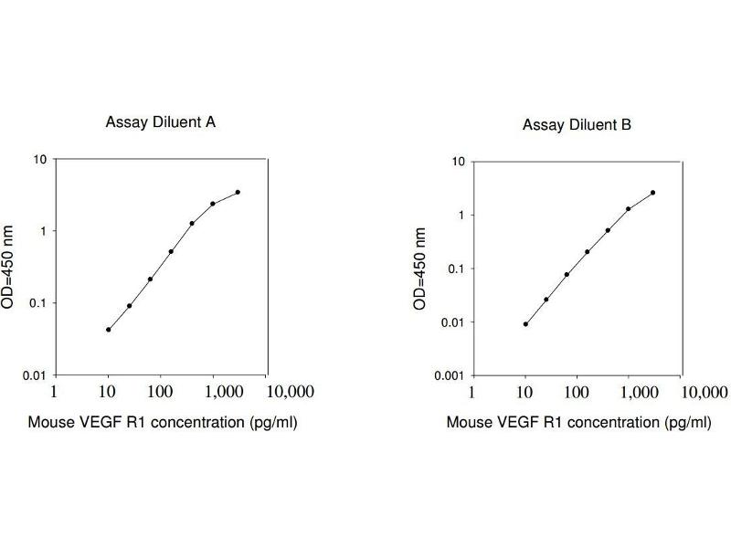 1. Bring all reagents and samples to room temperature (18 - 25°C) before use. 2. Sample dilution: Assay Diluent A (Item D) is used for dilution of serum/plasma samples, Assay Diluent B (Item E) is used for dilution of cell culture supernatants. 3. Assay Diluent B should be diluted 5-fold with deionized or distilled water before use. 4. Preparation of standard: Briefly spin the vial of Item C and then add 400 µl Assay Diluent A (for serum/plasma samples) or 1x Assay Diluent B (for cell culture supernates) into Item C vial to prepare a 100 ng/ml standard. Dissolve the powder thoroughly by a gentle mix. Add 30 µl VEGF R1 standard (100 ng/ml) from the vial of Item C, into a tube with 970 µl Assay Diluent A or 1x Assay Diluent B to prepare a 3,000 pg/ml standard solution. Pipette 400 µl Assay Diluent A or 1x Assay Diluent B into each tube. Use the 3,000 pg/ml standard solution to produce a dilution series (shown below). Mix each tube thoroughly before the next transfer. Gently vortex to mix. Assay Diluent A or 1x Assay Diluent B serves as the zero standard (0 pg/ml). 5. If the Wash Concentrate (20x) (Item B) contains visible crystals, warm to room temperature and mix gently until dissolved. Dilute 20 ml of Wash Buffer Concentrate into deionized or distilled water to yield 400 ml of 1x Wash Buffer. 6. Briefly spin the Detection Antibody vial (Item F) before use. Add 100 µl of 1x Assay Diluent B into the vial to prepare a detection antibody concentrate. Pipette up and down to mix gently (the concentrate can be stored at 4°C for 5 days). The detection antibody concentrate should be diluted 80-fold with 1x Assay Diluent B and used in step 4 of Part VI Assay Procedure. 7. Briefly spin the HRP-Streptavidin concentrate vial (Item G) and pipette up and down to mix gently before use. HRP-Streptavidin concentrate should be diluted 10,000-fold with 1x Assay Diluent B. For example: Briefly spin the vial (Item G) and pipette up and down to mix gently . Add 2 µl of HRP-Streptavidin concentrate into a tube with 198 µl 1x Assay Diluent B to prepare a 100-fold diluted HRP- Streptavidin solution (do not store the diluted solution for next day use). Mix through and then pipette 100 µl of prepared 100-fold diluted solution into a tube with 10 ml 1x Assay Diluent B to prepare a final 10,000 fold diluted HRP-Streptavidin solution.