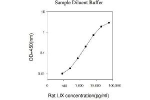 Recovery: Recovery was determined by spiking various levels of rat LIX into tissue lysate and cell lysate. Mean recoveries are as follows: Sample Type Average % Recovery Range ( %) Tissue lysate 93.47 84-103 Cell lysate 91.25 82-102