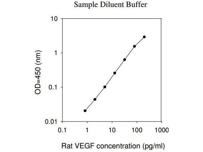 Recovery: Recovery was determined by spiking various levels of rat VEGF into rat tissue lysate and cell lysate. Mean recoveries are as follows: Sample Type Average % Recovery Range ( %) Tissue lysate 94.34 82-102 Cell lysate 92.67 81-102