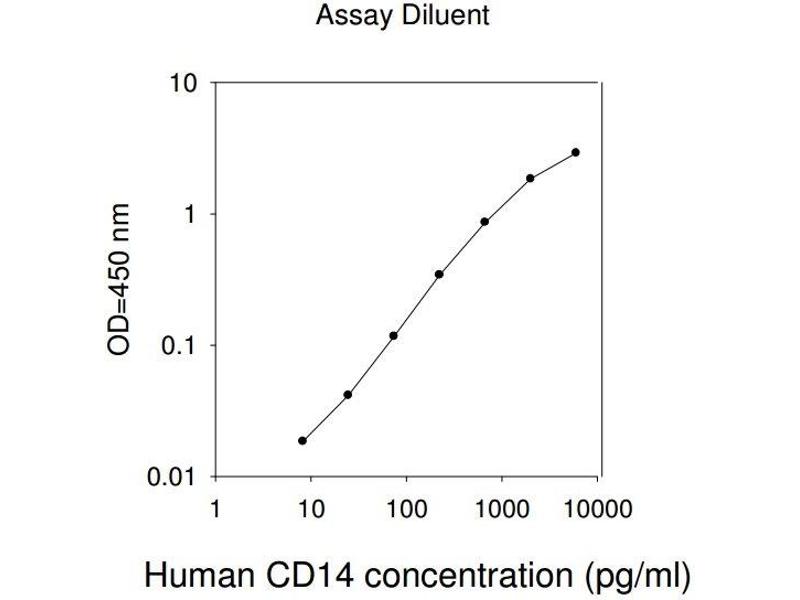 - The Human CD14 ELISA (Enzyme-Linked Immunosorbent Assay) kit is an in vitro enzyme-linked immunosorbent assay for the quantitative measurement of human CD14 in serum, plasma, cell culture supernatants and urine. This assay employs an antibody specific for human CD14 coated on a 96-well plate. Standards and samples are pipetted into the wells and CD14 present in a sample is bound to the wells by the immobilized antibody. The wells are washed and biotinylated anti-human CD14 antibody is added. After washing away unbound biotinylated antibody, HRP-conjugated streptavidin is pipetted to the wells. The wells are again washed, a TMB substrate solution is added to the wells and color develops in proportion to the amount of CD14 bound. The Stop Solution changes the color from blue to yellow, and the intensity of the color is measured at 450 nm. Reproducibility: Intra-Assay: CV<10% Inter-Assay: CV<12%.