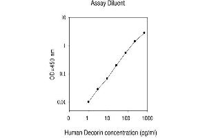 Typical Data: These standard curves are for demonstration only. A standard curve must be run with each assay. Assay Diluent Human Decorin concentration (pg/mL) O D =4 50 n m 0.01 0.1 1 10 0 1 10 100 1000