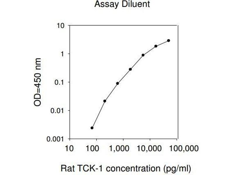 Typical Data: These standard curves are for demonstration only. A standard curve must be run with each assay. Assay Diluent Rat TCK-1 concentration (pg/mL) O D =4 50 n m 0.001 0.01 0.1 1 10 10 100 1,000 10,000 100,000