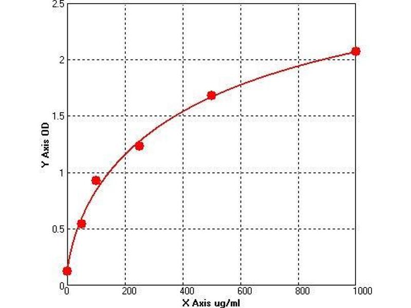 Prepare all Standards before starting assay procedure (Please read Reagents Preparation). It is recommended that all Standards and Samples be added in duplicate to the Microtiter Plate. 1. Secure the desired number of coated wells in the holder then add 50 µL of Standards or Samples to the appropriate well of the antibody pre-coated Microtiter Plate. 2. Add 50 μL of Conjugate to each well. Mix well. Complete mixing in this step is important. Cover and incubate for 1 hour at 37 °C. 3. Wash the Microtiter Plate using one of the specified methods indicated below: 4. Manual Washing: Remove incubation mixture by aspirating contents of the plate into a sink or proper waste container. Using a squirt bottle, fill each well completely with wash solution, then aspirate contents of the plate into a sink or proper waste container. Repeat this procedure four more times for a total of FIVE washes. After final wash, invert plate, and blot dry by hitting plate onto absorbent paper or paper towels until no moisture appears. Note: Hold the sides of the plate frame firmly hen washing the plate to assure that all strips remain securely in frame. 5. Automated Washing: Aspirate all wells, and then wash plate FIVE times using wash solution. Always adjust your washer to aspirate as much liquid as possible and set fill volume at 350 µL/well/wash (range: 350-400 µL). After final wash, invert plate, and blot dry by hitting plate onto absorbent paper or paper towels until no moisture appears. It is recommended that the washer be set for a soaking time of 10 seconds or shaking time of 5 seconds between washes. 6. Add 50 µL Substrate A to each well. 7.Add 50 µL Substrate B to each well. Cover and incubate for 15 minutes at 20-25 °C. (avoid sunlight) 8. Add 50 µL of Stop Solution to each well. Mix well. 9. Read the Optical Density (O.D.) at 450 nm using a microtiter plate reader immediately.