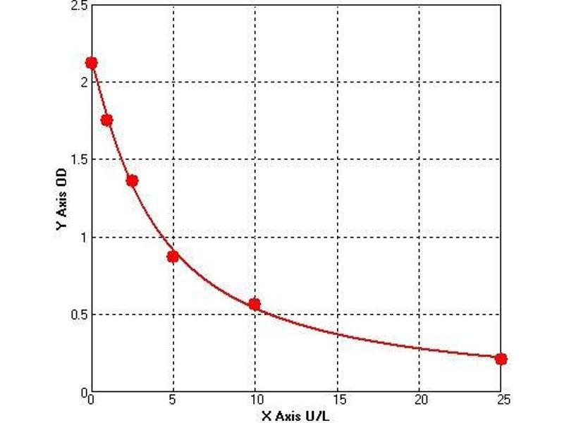 Prepare all Standards before starting assay procedure (Please read Reagents Preparation). It is recommended that all Standards and Samples be added in duplicate to the Microtiter Plate. 1. Secure the desired number of coated wells in the holder then add 50 µL of Standards or Samples to the appropriate well of the antibody pre-coated Microtiter Plate. 2. Add 50 μL of Conjugate to each well. Mix well. Complete mixing in this step is important. Cover and incubate for 1 hour at 37 °C. 3. Wash the Microtiter Plate using one of the specified methods indicated below: 4. Manual Washing: Remove incubation mixture by aspirating contents of the plate into a sink or proper waste container. Using a squirt bottle, fill each well completely with wash solution, then aspirate contents of the plate into a sink or proper waste container. Repeat this procedure four more times for a total of FIVE washes. After final wash, invert plate, and blot dry by hitting plate onto absorbent paper or paper towels until no moisture appears. Note: Hold the sides of the plate frame firmly hen washing the plate to assure that all strips remain securely in frame. 5. Automated Washing: Aspirate all wells, and then wash plate FIVE times using wash solution. Always adjust your washer to aspirate as much liquid as possible and set fill volume at 350 µL/well/wash (range: 350-400 µL). After final wash, invert plate, and blot dry by hitting plate onto absorbent paper or paper towels until no moisture appears. It is recommended that the washer be set for a soaking time of 10 seconds or shaking time of 5 seconds between washes. 6. Add 50 µL Substrate A to each well. 7.Add 50 µL Substrate B to each well. Cover and incubate for 15 minutes at 20-25 °C. (avoid sunlight) 8. Add 50 µL of Stop Solution to each well. Mix well. 9. Read the Optical Density (O.D.) at 450 nm using a microtiter plate reader immediately.