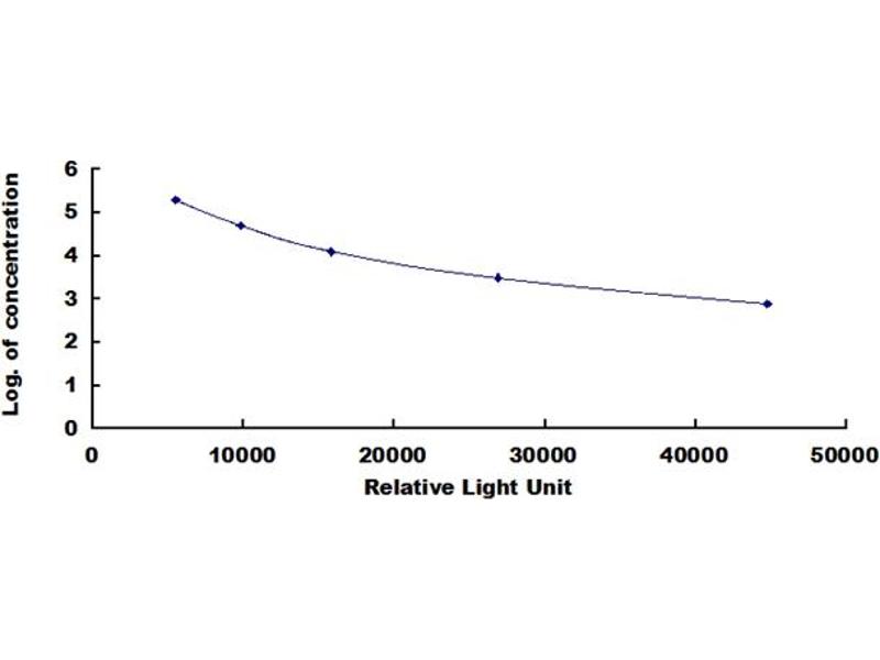 This assay employs the competitive inhibition enzyme immunoassay technique, so there is an inverse correlation between target concentration in the sample and the assay signal intensity. Average the duplicate readings for each standard, control, and samples. Create a standard curve on log-log graph paper, with the log of target concentration on the y-axis and the relative light unit (RLU) value on the x-axis. Draw the best fit straight line through the standard points and it can be determined by regression analysis. Using some plot software, such as curve expert 1.30, is also recommended. If samples have been diluted, the concentration read from the standard curve must be multiplied by the dilution factor.