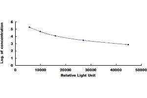 In order to make the calculation easier, we plot the RLU value of the standard (X-axis) against the known log of concentration of the standard (Y-axis), although concentration is indeed the independent variable while RLU value is the dependent variable. The RLU values of the standard curve may vary according to the conditions of assay performance (e.g. operator, pipetting technique, washing technique or temperature effects). This curve is provided for demonstration only. Typical standard curve below is provided for reference only. -