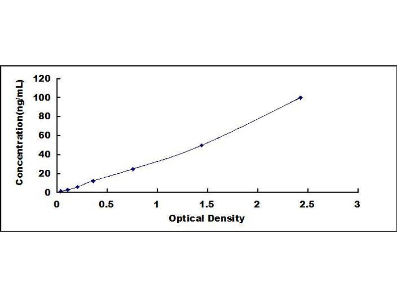 - Standard - Reconstitute the Standard with 1.0 mL of Standard Diluent, keep for 10 minutes at room temperature, shake gently (not to foam). The concentration of the standard in the stock solution is 100 ng/mL. Prepare 7 tubes containing 0.5 mL Standard Diluent and produce a double dilution series. Mix each tube thoroughly before the next transfer. Set up 7 points of diluted standard such as 100 ng/mL, 50 ng/mL, 25 ng/mL, 12.5 ng/mL, 6.25 ng/mL, 3.12 ng/mL, 1.56 ng/mL, and the last microcentrifuge tube with Standard Diluent is the blank as 0 ng/mL.