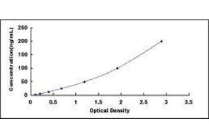 2. Standard - Reconstitute the Standard with 1.0 mL of Standard Diluent, keep for 10 minutes at room temperature, shake gently (not to foam). The concentration of the standard in the stock solution is 1,600 ng/mL. Firstly dilute the stock solution to 200 ng/mL and the diluted standard serves as the highest standard (200 ng/mL). Then prepare 7 tubes containing 0.5 mL Standard Diluent and use the diluted standard to produce a double dilution series. Mix each tube thoroughly before the next transfer. Set up 7 points of diluted standard such as 200 ng/mL, 100 ng/mL, 50 ng/mL, 25 ng/mL, 12.5 ng/mL, 6.25 ng/mL, 3.12 ng/mL, and the last microcentrifuge tube with Standard Diluent is the blank as 0 ng/mL.