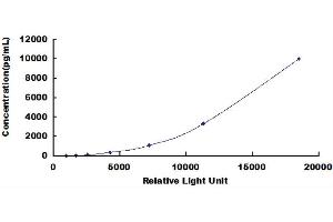 In order to make the calculation easier, we plot the RLU value of the standard (X-axis) against the known concentration of the standard (Y-axis), although concentration is indeed the independent variable while RLU value is the dependent variable. Further, in this part, in order to help the customer perform the assay more visual, we provide the customer with the raw data (not the log of data). However, plotting log of the data to construct the curve will be recommended. The RLU values of the standard curve may vary according to the conditions of assay performance (e.g. operator, pipetting technique, washing technique or temperature effects). This curve is provided for demonstration only. The customers should establish their own standard curve for each test conducted. -