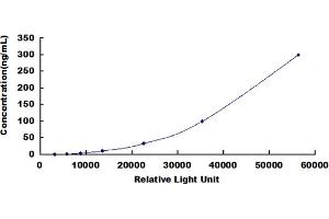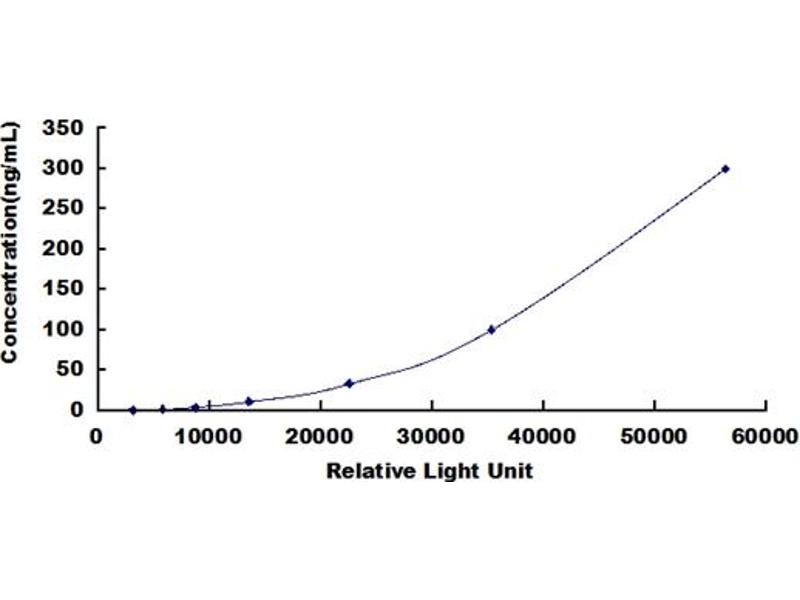 In order to make the calculation easier, we plot the RLU value of the standard (X-axis) against the known concentration of the standard (Y-axis), although concentration is indeed the independent variable while RLU value is the dependent variable. Further, in this part, in order to help the customer perform the assay more visual, we provide the customer with the raw data (not the log of data). However, plotting log of the data to construct the curve will be recommended. The RLU values of the standard curve may vary according to the conditions of assay performance (e.g. operator, pipetting technique, washing technique or temperature effects). This curve is provided for demonstration only. The customers should establish their own standard curve for each test conducted. -
