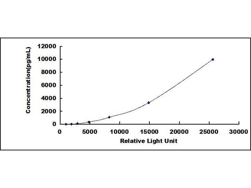 In order to make the calculation easier, we plot the RLU value of the standard (X-axis) against the known concentration of the standard (Y-axis), although concentration is indeed the independent variable while RLU value is the dependent variable. Further, in this part, in order to help the customer perform the assay more visual, we provide the customer with the raw data (not the log of data). However, plotting log of the data to construct the curve will be recommended. The RLU values of the standard curve may vary according to the conditions of assay performance (e.g. operator, pipetting technique, washing technique or temperature effects). This curve is provided for demonstration only. The customers should establish their own standard curve for each test conducted. -