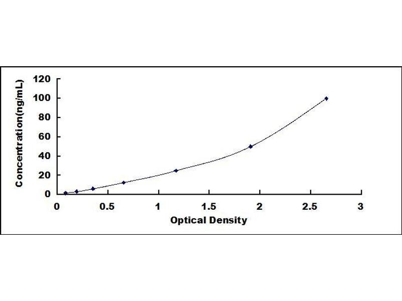 - Standard - Reconstitute the Standard with 1.0 mL of Standard Diluent, keep for 10 minutes at room temperature, shake gently (not to foam). The concentration of the standard in the stock solution is 100 ng/mL. Prepare 7 tubes containing 0.5 mL Standard Diluent and produce a double dilution series. Mix each tube thoroughly before the next transfer. Set up 7 points of diluted standard such as 100 ng/mL, 50 ng/mL, 25 ng/mL, 12.5 ng/mL, 6.25 ng/mL, 3.12 ng/mL, 1.56 ng/mL, and the last microcentrifuge tube with Standard Diluent is the blank as 0 ng/mL.