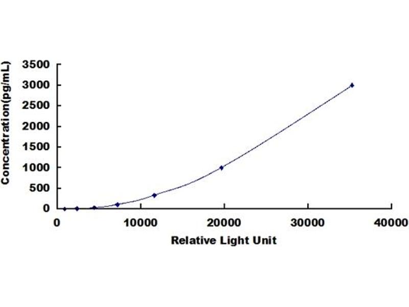 In order to make the calculation easier, we plot the RLU value of the standard (X-axis) against the known concentration of the standard (Y-axis), although concentration is indeed the independent variable while RLU value is the dependent variable. Further, in this part, in order to help the customer perform the assay more visual, we provide the customer with the raw data (not the log of data). However, plotting log of the data to construct the curve will be recommended. The RLU values of the standard curve may vary according to the conditions of assay performance (e.g. operator, pipetting technique, washing technique or temperature effects). This curve is provided for demonstration only. The customers should establish their own standard curve for each test conducted. -