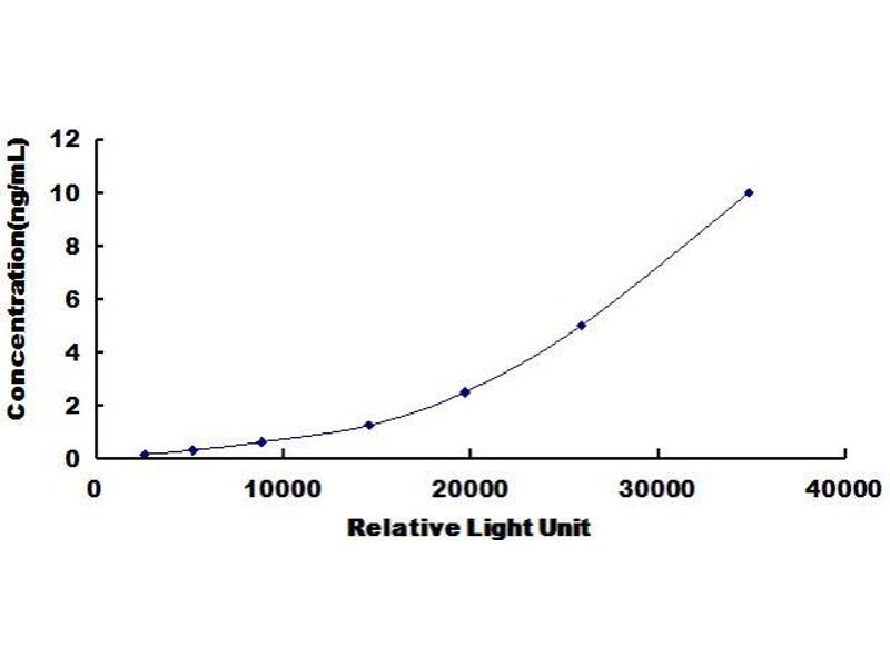 Average the duplicate readings for each standard, control, and samples and subtract the average zero standard relative light unit (RLU). Create a standard curve on log-log graph paper, with LEFTY1 concentration on the y-axis and the RLU value on the x-axis. Draw the best fit straight line through the standard points and it can be determined by regression analysis. Using some plot software, such as curve expert 1.30, is also recommended. If samples have been diluted, the concentration read from the standard curve must be multiplied by the dilution factor.