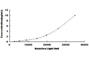 In order to make the calculation easier, we plot the RLU value of the standard (X-axis) against the known concentration of the standard (Y-axis), although concentration is indeed the independent variable while RLU value is the dependent variable. Further, in this part, in order to help the customer perform the assay more visual, we provide the customer with the raw data (not the log of data). However, plotting log of the data to construct the curve will be recommended. The RLU values of the standard curve may vary according to the conditions of assay performance (e.g. operator, pipetting technique, washing technique or temperature effects). This curve is provided for demonstration only. The customers should establish their own standard curve for each test conducted. -