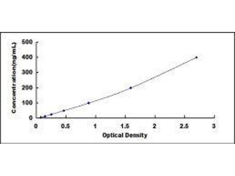 - Standard - Reconstitute the Standard with 1.0 mL of Standard Diluent, keep for 10 minutes at room temperature, shake gently (not to foam). The concentration of the standard in the stock solution is 800 ng/mL. Firstly dilute the stock solution to 400 ng/mL and the diluted standard serves as the highest standard (400 ng/mL). Then prepare 7 tubes containing 0.5 mL Standard Diluent and use the diluted standard to produce a double dilution series. Mix each tube thoroughly before the next transfer. Set up 7 points of diluted standard such as 400 ng/mL, 200 ng/mL, 100 ng/mL, 50 ng/mL, 25 ng/mL, 12.5 ng/mL, 6.25 ng/mL, and the last microcentrifuge tube with Standard Diluent is the blank as 0 ng/mL.