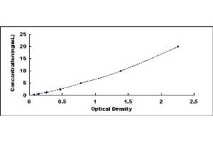 - Standard - Reconstitute the Standard with 1.0 mL of Standard Diluent, keep for 10 minutes at room temperature, shake gently (not to foam). The concentration of the standard in the stock solution is 20 ng/mL. Prepare 7 tubes containing 0.5 mL Standard Diluent and produce a double dilution series. Mix each tube thoroughly before the next transfer. Set up 7 points of diluted standard such as 20 ng/mL, 10 ng/mL, 5 ng/mL, 2.5 ng/mL, 1.25 ng/mL, 0.625 ng/mL, 0.312 ng/mL, and the last microcentrifuge tube with Standard Diluent is the blank as 0 ng/mL.
