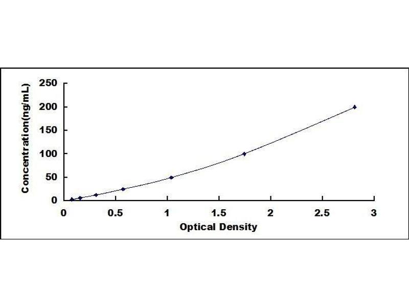 2. Standard - Reconstitute the Standard with 1.0 mL of Standard Diluent, keep for 10 minutes at room temperature, shake gently (not to foam). The concentration of the standard in the stock solution is 400 ng/mL. Firstly dilute the stock solution to 200 ng/mL and the diluted standard serves as the highest standard (200 ng/mL). Then prepare 7 tubes containing 0.5 mL Standard Diluent and use the diluted standard to produce a double dilution series. Mix each tube thoroughly before the next transfer. Set up 7 points of diluted standard such as 200 ng/mL, 100 ng/mL, 50 ng/mL, 25 ng/mL, 12.5 ng/mL, 6.25 ng/mL, 3.12 ng/mL, and the last microcentrifuge tube with Standard Diluent is the blank as 0 ng/mL.