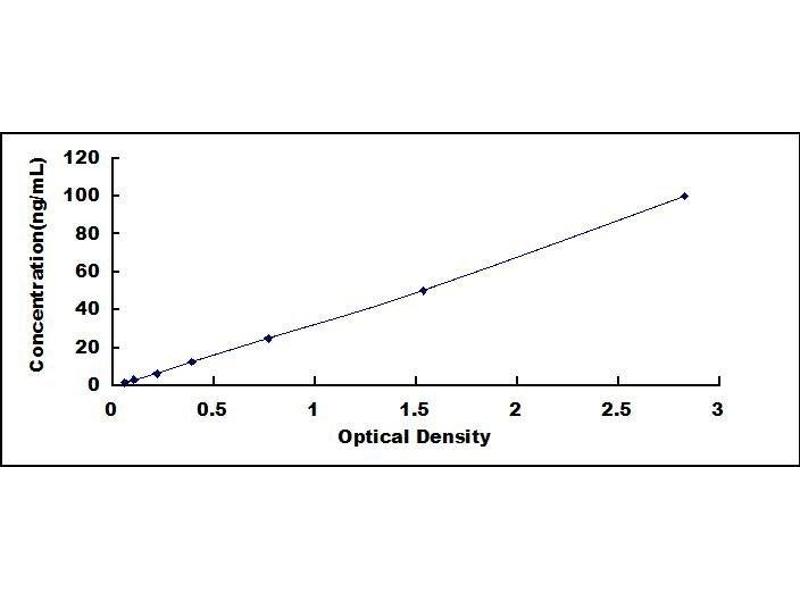 - Standard - Reconstitute the Standard with 1.0 mL of Standard Diluent, keep for 10 minutes at room temperature, shake gently (not to foam). The concentration of the standard in the stock solution is 200 ng/mL. Firstly dilute the stock solution to 100 ng/mL and the diluted standard serves as the highest standard (100 ng/mL). Then prepare 7 tubes containing 0.5 mL Standard Diluent and use the diluted standard to produce a double dilution series. Mix each tube thoroughly before the next transfer. Set up 7 points of diluted standard such as 100 ng/mL, 50 ng/mL, 25 ng/mL, 12.5 ng/mL, 6.25 ng/mL, 3.12 ng/mL, 1.56 ng/mL, and the last microcentrifuge tube with Standard Diluent is the blank as 0 ng/mL.