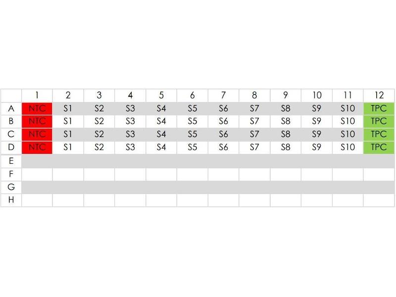 - Distribute the mastermix to your strips/plate. An example setup is given in the images).