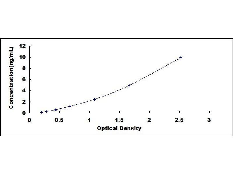 - Standard - Reconstitute the Standard with 1.0 mL of Standard Diluent, keep for 10 minutes at room temperature, shake gently (not to foam). The concentration of the standard in the stock solution is 40 ng/mL. Firstly dilute the stock solution to 10 ng/mL and the diluted standard serves as the highest standard (10 ng/mL). Then prepare 7 tubes containing 0.5 mL Standard Diluent and use the diluted standard to produce a double dilution series. Mix each tube thoroughly before the next transfer. Set up 7 points of diluted standard such as 10 ng/mL, 5 ng/mL, 2.5 ng/mL, 1.25 ng/mL, 0.625 ng/mL, 0.312 ng/mL, 0.156 ng/mL, and the last microcentrifuge tube with Standard Diluent is the blank as 0 ng/mL.