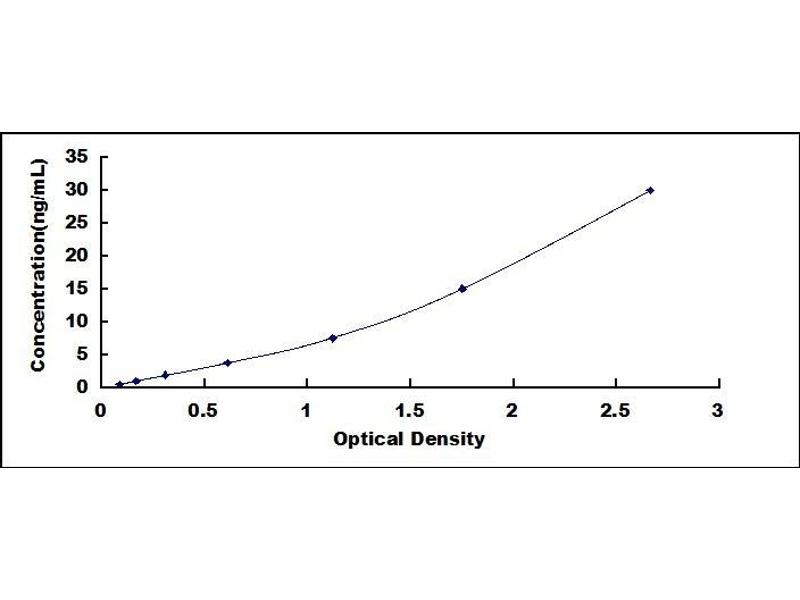 - Standard - Reconstitute the Standard with 1.0 mL of Standard Diluent, keep for 10 minutes at room temperature, shake gently (not to foam). The concentration of the standard in the stock solution is 30 ng/mL. Prepare 7 tubes containing 0.5 mL Standard Diluent and produce a double dilution series. Mix each tube thoroughly before the next transfer. Set up 7 points of diluted standard such as 30 ng/mL, 15 ng/mL, 7.5 ng/mL, 3.75 ng/mL, 1.88 ng/mL, 0.94 ng/mL, 0.47 ng/mL, and the last microcentrifuge tube with Standard Diluent is the blank as 0 ng/mL.
