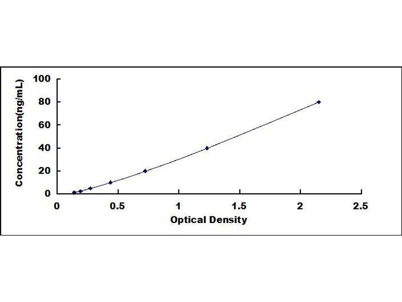 - Standard - Reconstitute the Standard with 1.0 mL of Standard Diluent, keep for 10 minutes at room temperature, shake gently (not to foam). The concentration of the standard in the stock solution is 160 ng/mL. Firstly dilute the stock solution to 80 ng/mL and the diluted standard serves as the highest standard (80 ng/mL). Then prepare 7 tubes containing 0.5 mL Standard Diluent and use the diluted standard to produce a double dilution series. Mix each tube thoroughly before the next transfer. Set up 7 points of diluted standard such as 80 ng/mL, 40 ng/mL, 20 ng/mL, 10 ng/mL, 5 ng/mL, 2.5 ng/mL, 1.25 ng/mL, and the last microcentrifuge tube with Standard Diluent is the blank as 0 ng/mL.