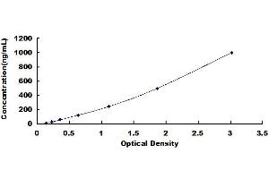 2. Standard - Reconstitute the Standard with 1.0 mL of Standard Diluent, keep for 10 minutes at room temperature, shake gently (not to foam). The concentration of the standard in the stock solution is 1,000 ng/mL. Prepare 7 tubes containing 0.5 mL Standard Diluent and produce a double dilution series. Mix each tube thoroughly before the next transfer. Set up 7 points of diluted standard such as 1,000 ng/mL, 500 ng/mL, 250 ng/mL, 125 ng/mL, 62.5 ng/mL, 31.2 ng/mL, 15.6 ng/mL, and the last microcentrifuge tube with Standard Diluent is the blank as 0 ng/mL.
