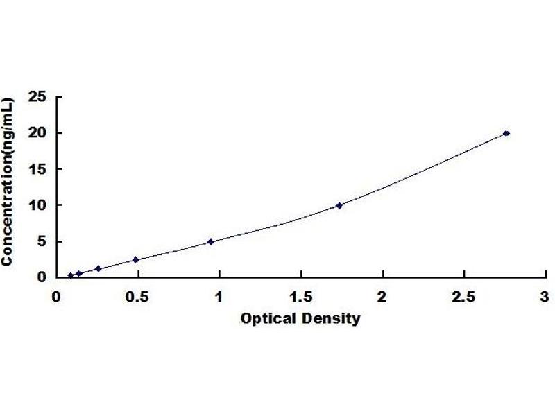 - Standard - Reconstitute the Standard with 0.5 mL of Standard Diluent, keep for 10 minutes at room temperature, shake gently (not to foam). The concentration of the standard in the stock solution is 20 ng/mL. Prepare 7 tubes containing 0.25 mL Standard Diluent and produce a double dilution series. Mix each tube thoroughly before the next transfer. Set up 7 points of diluted standard such as 20 ng/mL, 10 ng/mL, 5 ng/mL, 2.5 ng/mL, 1.25 ng/mL, 0.625 ng/mL, 0.312 ng/mL, and the last microcentrifuge tube with Standard Diluent is the blank as 0 ng/mL.