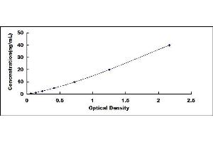 2. Standard - Reconstitute the Standard with 1.0 mL of Standard Diluent, keep for 10 minutes at room temperature, shake gently (not to foam). The concentration of the standard in the stock solution is 40 ng/mL. Prepare 7 tubes containing 0.5 mL Standard Diluent and produce a double dilution series. Mix each tube thoroughly before the next transfer. Set up 7 points of diluted standard such as 40 ng/mL, 20 ng/mL, 10 ng/mL, 5 ng/mL, 2.5 ng/mL, 1.25 ng/mL, 0.625 ng/mL, and the last microcentrifuge tube with Standard Diluent is the blank as 0 ng/mL.
