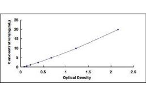 2. Standard - Reconstitute the Standard with 1.0 mL of Standard Diluent, keep for 10 minutes at room temperature, shake gently (not to foam). The concentration of the standard in the stock solution is 20 ng/mL. Prepare 7 tubes containing 0.5 mL Standard Diluent and produce a double dilution series. Mix each tube thoroughly before the next transfer. Set up 7 points of diluted standard such as 20 ng/mL, 10 ng/mL, 5 ng/mL, 2.5 ng/mL, 1.25 ng/mL, 0.625 ng/mL, 0.312 ng/mL, and the last microcentrifuge tube with Standard Diluent is the blank as 0 ng/mL.