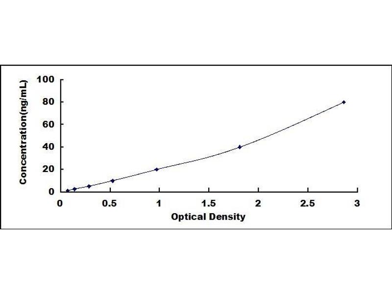 - Standard - Reconstitute the Standard with 1.0 mL of Standard Diluent, keep for 10 minutes at room temperature, shake gently (not to foam). The concentration of the standard in the stock solution is 640 ng/mL. Firstly dilute the stock solution to 80 ng/mL and the diluted standard serves as the highest standard (80 ng/mL). Then prepare 7 tubes containing 0.5 mL Standard Diluent and use the diluted standard to produce a double dilution series. Mix each tube thoroughly before the next transfer. Set up 7 points of diluted standard such as 80 ng/mL, 40 ng/mL, 20 ng/mL, 10 ng/mL, 5 ng/mL, 2.5 ng/mL, 1.25 ng/mL, and the last microcentrifuge tube with Standard Diluent is the blank as 0 ng/mL.