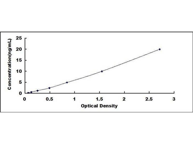 - Standard - Reconstitute the Standard with 1.0 mL of Standard Diluent, keep for 10 minutes at room temperature, shake gently (not to foam). The concentration of the standard in the stock solution is 80 ng/mL. Firstly dilute the stock solution to 20 ng/mL and the diluted standard serves as the highest standard (20 ng/mL). Then prepare 7 tubes containing 0.5 mL Standard Diluent and use the diluted standard to produce a double dilution series. Mix each tube thoroughly before the next transfer. Set up 7 points of diluted standard such as 20 ng/mL, 10 ng/mL, 5 ng/mL, 2.5 ng/mL, 1.25 ng/mL, 0.625 ng/mL, 0.312 ng/mL, and the last microcentrifuge tube with Standard Diluent is the blank as 0 ng/mL.