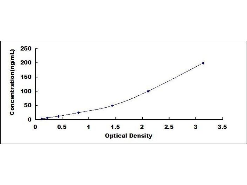 - Standard - Reconstitute the Standard with 1.0 mL of Standard Diluent, keep for 10 minutes at room temperature, shake gently (not to foam). The concentration of the standard in the stock solution is 1,600 ng/mL. Firstly dilute the stock solution to 200 ng/mL and the diluted standard serves as the highest standard (200 ng/mL). Then prepare 7 tubes containing 0.5 mL Standard Diluent and use the diluted standard to produce a double dilution series. Mix each tube thoroughly before the next transfer. Set up 7 points of diluted standard such as 200 ng/mL, 100 ng/mL, 50 ng/mL, 25 ng/mL, 12.5 ng/mL, 6.25 ng/mL, 3.12 ng/mL, and the last microcentrifuge tube with Standard Diluent is the blank as 0 ng/mL.