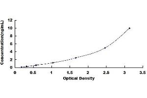 2. Standard - Reconstitute the Standard with 1.0 mL of Standard Diluent, keep for 10 minutes at room temperature, shake gently (not to foam). The concentration of the standard in the stock solution is 10 ng/mL. Prepare 7 tubes containing 0.5 mL Standard Diluent and produce a double dilution series. Mix each tube thoroughly before the next transfer. Set up 7 points of diluted standard such as 10 ng/mL, 5 ng/mL, 2.5 ng/mL, 1.25 ng/mL, 0.625 ng/mL, 0.312 ng/mL, 0.156 ng/mL, and the last microcentrifuge tube with Standard Diluent is the blank as 0 ng/mL.