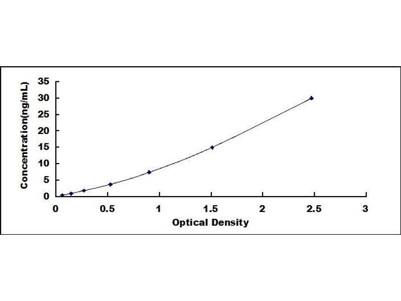 - Standard - Reconstitute the Standard with 1.0 mL of Standard Diluent, keep for 10 minutes at room temperature, shake gently (not to foam). The concentration of the standard in the stock solution is 120 ng/mL. Firstly dilute the stock solution to 30 ng/mL and the diluted standard serves as the highest standard (30 ng/mL). Then prepare 7 tubes containing 0.5 mL Standard Diluent and use the diluted standard to produce a double dilution series. Mix each tube thoroughly before the next transfer. Set up 7 points of diluted standard such as 30 ng/mL, 15 ng/mL, 7.5 ng/mL, 3.75 ng/mL, 1.88 ng/mL, 0.94 ng/mL, 0.47 ng/mL, and the last microcentrifuge tube with Standard Diluent is the blank as 0 ng/mL.