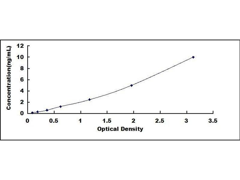 2. Standard - Reconstitute the Standard with 1.0 mL of Standard Diluent, keep for 10 minutes at room temperature, shake gently (not to foam). The concentration of the standard in the stock solution is 100 ng/mL. Firstly dilute the stock solution to 10 ng/mL and the diluted standard serves as the highest standard (10 ng/mL). Then prepare 7 tubes containing 0.5 mL Standard Diluent and use the diluted standard to produce a double dilution series. Mix each tube thoroughly before the next transfer. Set up 7 points of diluted standard such as 10 ng/mL, 5 ng/mL, 2.5 ng/mL, 1.25 ng/mL, 0.625 ng/mL, 0.312 ng/mL, 0.156 ng/mL, and the last microcentrifuge tube with Standard Diluent is the blank as 0 ng/mL.