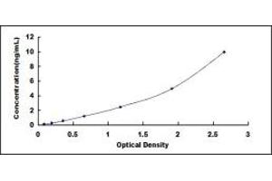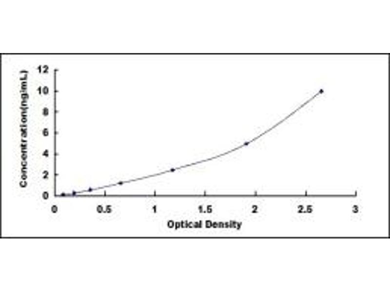 2. Standard - Reconstitute the Standard with 1.0 mL of Standard Diluent, keep for 10 minutes at room temperature, shake gently (not to foam). The concentration of the standard in the stock solution is 40 ng/mL. Firstly dilute the stock solution to 10 ng/mL and the diluted standard serves as the highest standard (10 ng/mL). Then prepare 7 tubes containing 0.5 mL Standard Diluent and use the diluted standard to produce a double dilution series. Mix each tube thoroughly before the next transfer. Set up 7 points of diluted standard such as 10 ng/mL, 5 ng/mL, 2.5 ng/mL, 1.25 ng/mL, 0.625 ng/mL, 0.312 ng/mL, 0.156 ng/mL, and the last microcentrifuge tube with Standard Diluent is the blank as 0 ng/mL.