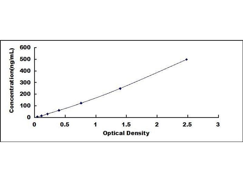 - Standard - Reconstitute the Standard with 1.0 mL of Standard Diluent, keep for 10 minutes at room temperature, shake gently (not to foam). The concentration of the standard in the stock solution is 2,000 ng/mL. Firstly dilute the stock solution to 500 ng/mL and the diluted standard serves as the highest standard (500 ng/mL). Then prepare 7 tubes containing 0.5 mL Standard Diluent and use the diluted standard to produce a double dilution series. Mix each tube thoroughly before the next transfer. Set up 7 points of diluted standard such as 500 ng/mL, 250 ng/mL, 125 ng/mL, 62.5 ng/mL, 31.2 ng/mL, 15.6 ng/mL, 7.8 ng/mL, and the last microcentrifuge tube with Standard Diluent is the blank as 0 ng/mL.