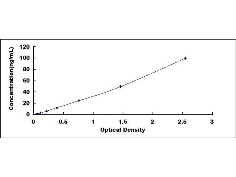 - Standard - Reconstitute the Standard with 1.0 mL of Standard Diluent, keep for 10 minutes at room temperature, shake gently (not to foam). The concentration of the standard in the stock solution is 400 ng/mL. Firstly dilute the stock solution to 100 ng/mL and the diluted standard serves as the highest standard (100 ng/mL). Then prepare 7 tubes containing 0.5 mL Standard Diluent and use the diluted standard to produce a double dilution series. Mix each tube thoroughly before the next transfer. Set up 7 points of diluted standard such as 100 ng/mL, 50 ng/mL, 25 ng/mL, 12.5 ng/mL, 6.25 ng/mL, 3.12 ng/mL, 1.56 ng/mL, and the last microcentrifuge tube with Standard Diluent is the blank as 0 ng/mL.