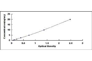 - Standard - Reconstitute the Standard with 1.0 mL of Standard Diluent, keep for 10 minutes at room temperature, shake gently (not to foam). The concentration of the standard in the stock solution is 40 ng/mL. Firstly dilute the stock solution to 20 ng/mL and the diluted standard serves as the highest standard (20 ng/mL). Then prepare 7 tubes containing 0.5 mL Standard Diluent and use the diluted standard to produce a double dilution series. Mix each tube thoroughly before the next transfer. Set up 7 points of diluted standard such as 20 ng/mL, 10 ng/mL, 5 ng/mL, 2.5 ng/mL, 1.25 ng/mL, 0.625 ng/mL, 0.312 ng/mL, and the last microcentrifuge tube with Standard Diluent is the blank as 0 ng/mL.