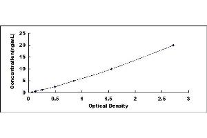 - Standard - Reconstitute the Standard with 1.0 mL of Standard Diluent, keep for 10 minutes at room temperature, shake gently (not to foam). The concentration of the standard in the stock solution is 80 ng/mL. Firstly dilute the stock solution to 20 ng/mL and the diluted standard serves as the highest standard (20 ng/mL). Then prepare 7 tubes containing 0.5 mL Standard Diluent and use the diluted standard to produce a double dilution series. Mix each tube thoroughly before the next transfer. Set up 7 points of diluted standard such as 20 ng/mL, 10 ng/mL, 5 ng/mL, 2.5 ng/mL, 1.25 ng/mL, 0.625 ng/mL, 0.312 ng/mL, and the last microcentrifuge tube with Standard Diluent is the blank as 0 ng/mL.