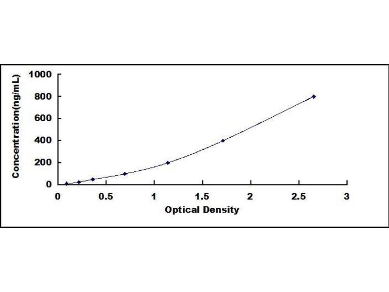 - Standard - Reconstitute the Standard with 1.0 mL of Standard Diluent, keep for 10 minutes at room temperature, shake gently (not to foam). The concentration of the standard in the stock solution is 3,200 ng/mL. Firstly dilute the stock solution to 800 ng/mL and the diluted standard serves as the highest standard (800 ng/mL). Then prepare 7 tubes containing 0.5 mL Standard Diluent and use the diluted standard to produce a double dilution series. Mix each tube thoroughly before the next transfer. Set up 7 points of diluted standard such as 800 ng/mL, 400 ng/mL, 200 ng/mL, 100 ng/mL, 50 ng/mL, 25 ng/mL, 12.5 ng/mL, and the last microcentrifuge tube with Standard Diluent is the blank as 0 ng/mL.